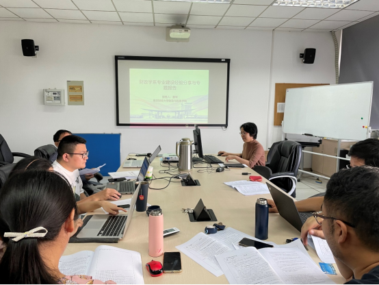 蔡军教授结合当前财政学专业正在进行的本科专业评估,认为专业评估工作要结合财政学专业特色,客观呈现教学状况,精准挖掘已有成果,精确表达专业现状,突出本专业建设的特色和亮点,并强调须客观展示学院的实验和实践教学平台、教学改革项目、教学成果、科研项目和成果等。在介绍教学经验时,蔡军教授强调做到“以本为本”,在强化师德师风培养、建设高效课堂教学、推进卓越教师培养、提升学生实践能力、服务地方社会发展等各个方面聚焦发力。