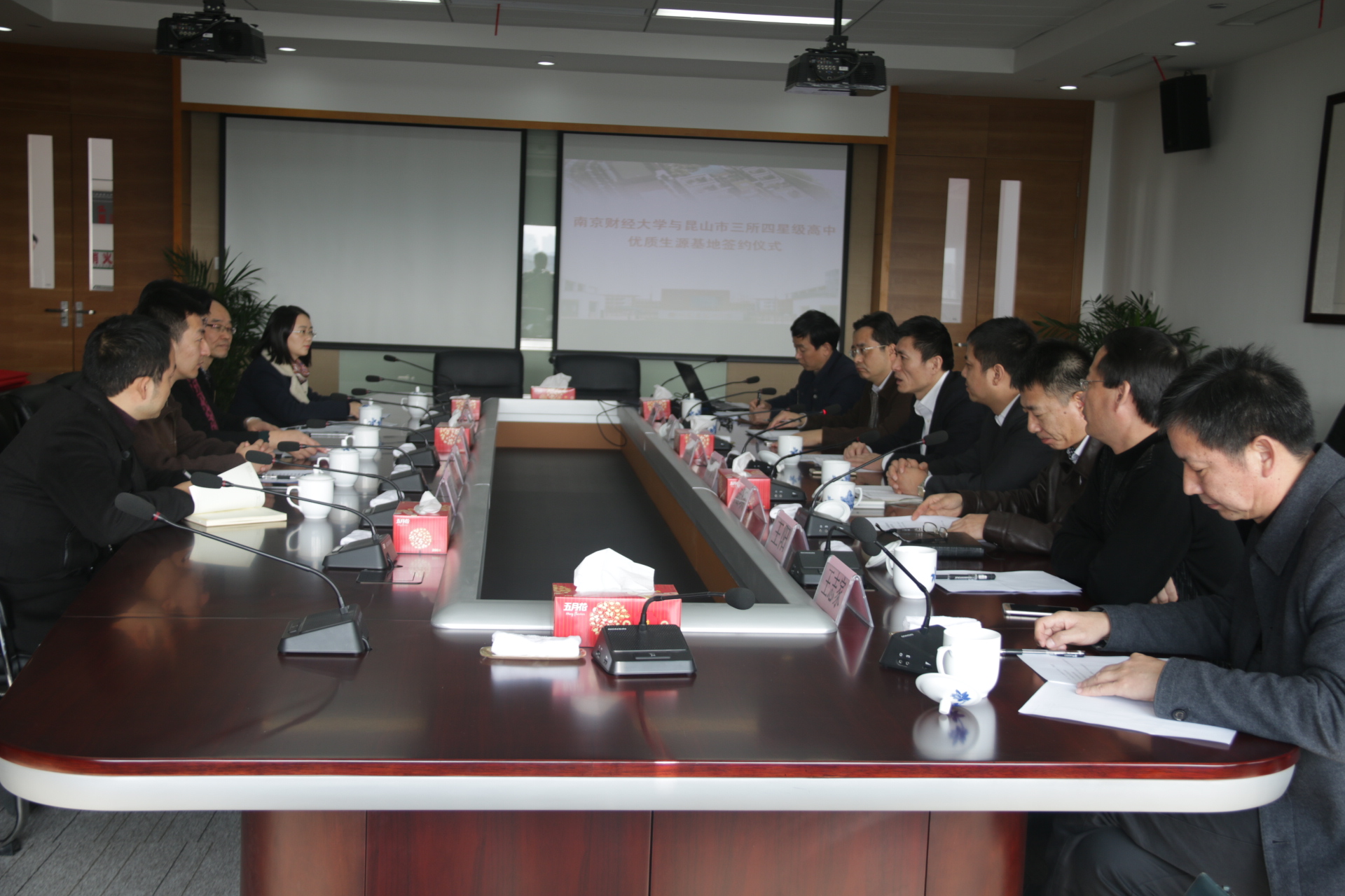 12月9日上午,副校长邱伟芬一行赴昆山市,与江苏省昆山中学、昆山市震川高级中学、昆山市第一中学等三所四星级高中签订“优质生源基地”合作协议,并授予“优质生源基地”铜牌。昆山市副市长江皓、陈修文,教育局局长金建鸿、党工委书记陆琪以及相关中学校长出席了仪式。学生处处长姚学峰、副处长衣琳、toptoon