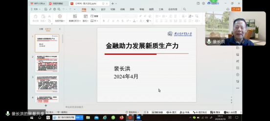 特邀中国社会科学院经济研究所研究员、中国社会科学院大学裴长洪教授为师生做题为《金融助力发展新质生产力》的线上学术讲座,会议由toptoon
