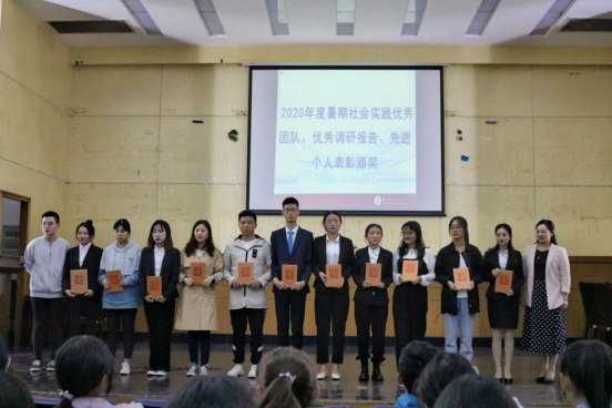 大会现场也对学院2020年暑期社会实践优秀团队、优秀调研报告、先进个人进行了表彰颁奖。最后,党委副书记李慕原总结讲话,充分肯定了在这一年学院暑期社会实践工作取得的丰硕成果,同时寄语2020级全体新生“东隅已逝,桑榆非晚,躬行求知,砥砺前行”,希望同学们能够在接下来的学习工作中继续秉持着求真务实、知行合一的精神,更快更好地适应大一的生活,追求高远,脚踏实地,取得更多更高的成绩。