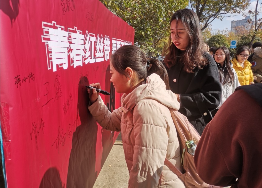 主办的“青春红丝带,要爱不要‘艾’”活动在仙林校区中苑食堂前广场举行。