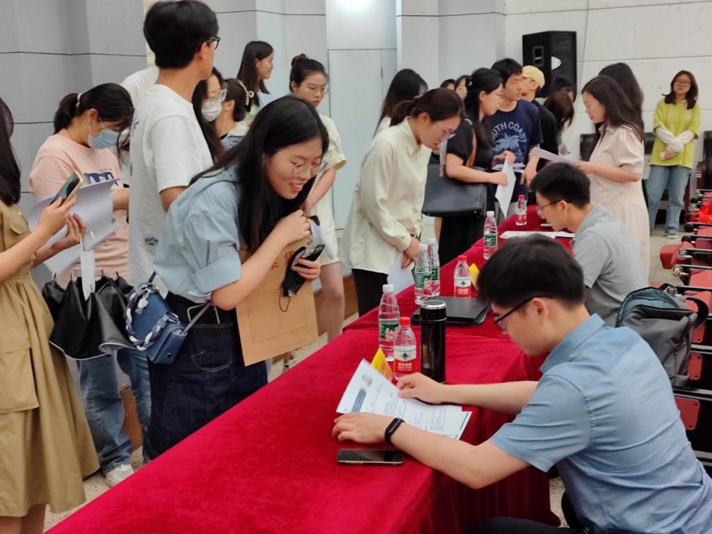 部分2023届本科生、研究生毕业生参加招聘会,部分低年级同学现场投递实习简历。
