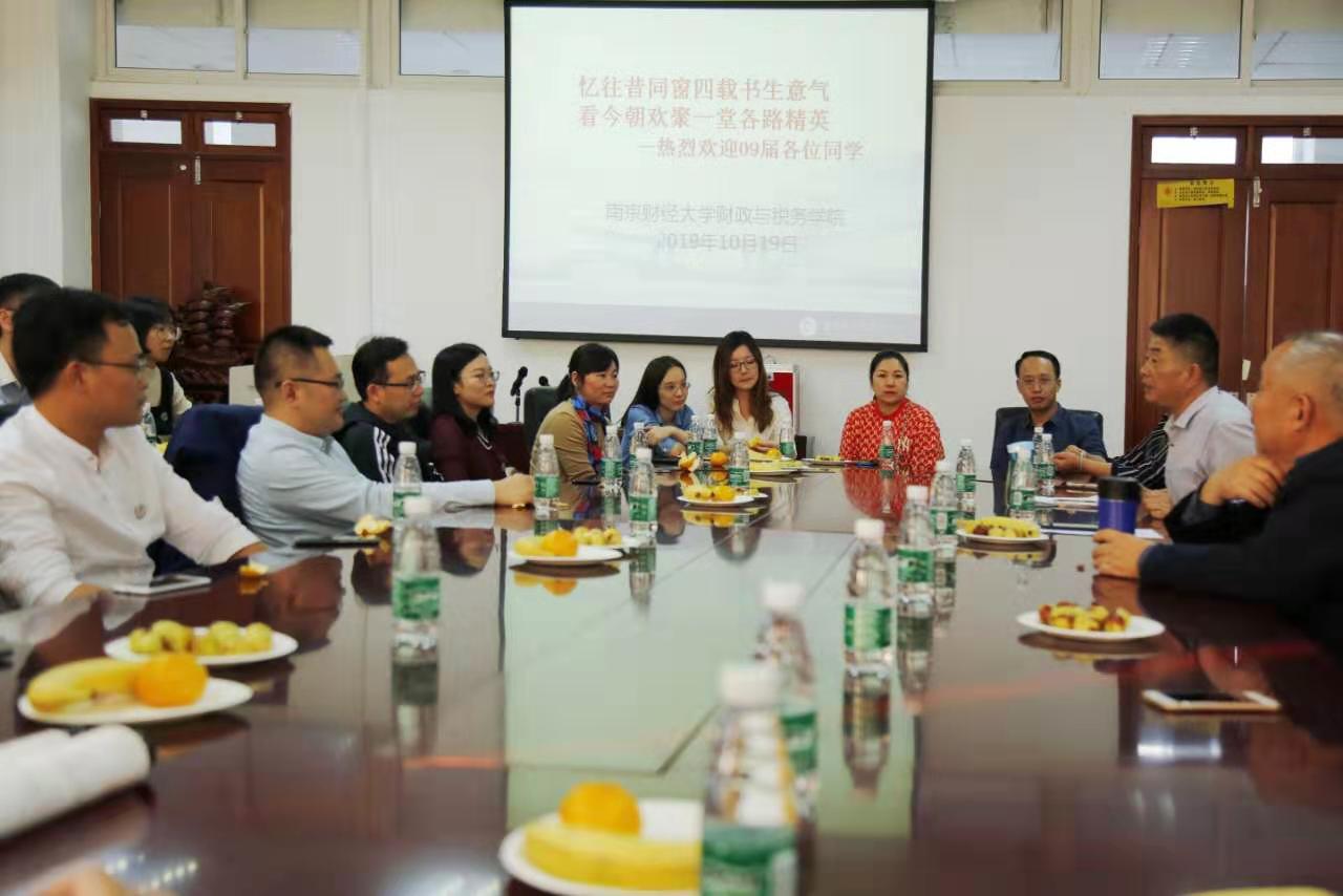 当天下午,学院在仙林校区德经楼408会议室召开2009届毕业十周年座谈会。座谈会由09届辅导员周立新老师主持,院党委副书记李慕原、院校友会办公室主任陆新葵等老师出席座谈会。李慕原副书记致欢迎辞,她首先代表学院欢迎毕业生们“回家”,感谢他们毕业后用持续学习、辛勤工作、奋力拼搏的精神展现了财税学子的风采,为母校赢得了荣誉,为学弟学妹树立了优秀的榜样。她侧重介绍了学校和学院的发展情况,强调可持续推进学院内涵建设,不断提升人才培养质量是学院牢固坚持的办学目标。她鼓励毕业生充分利用自身的工作经验、专业特长和行业背景,密切加强与学院、学弟学妹们的沟通交流,关心与支持学院各项事业的发展。周立新、陆新葵、陶学荣等老师深情回忆了与同学们相处的那段难忘岁月,感谢同学们远道而来,也希望同学们不要忘记财大学子肩上的责任。在工作中关注学院的发展,结合自身的工作经验与行业背景,为学校学院的人才培养工作积极建言献策。