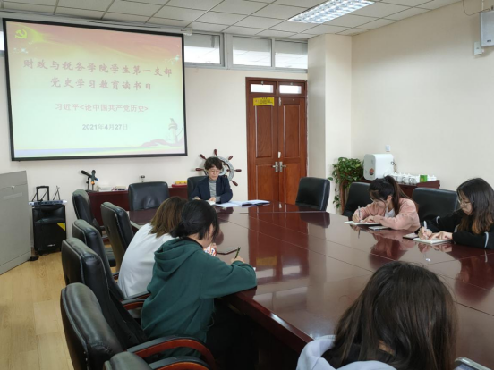 4月28日下午,财政系党支部、税收系党支部和机关党支部分别举办“党史学习教育读书日”集中研讨。财政系党支部在德经楼408会议室进行学习交流,财政系党支部纪检委员刘志红老师进行领学,随后支部党员教师们围绕《学好党史、新中国史、改革开放史、社会主义发展史》展开讨论。李亚婧老师表示,《旧唐书·魏徵传》中写到:以铜为镜,可以正衣冠,以史为镜,可以知兴替,以人为镜,可以明得失。历史从来都是一个民族最弥足珍贵的政治财富和精神瑰宝。作为青年党员教师,我们应该在这个快节奏的生活轨道上放慢自己的步调,静下心来好好研读四史,从先辈们舍身忘我的奋斗史中感悟先贤的力量和民族精神,从历史发展的轨迹中追寻民族富强的方向和源泉。