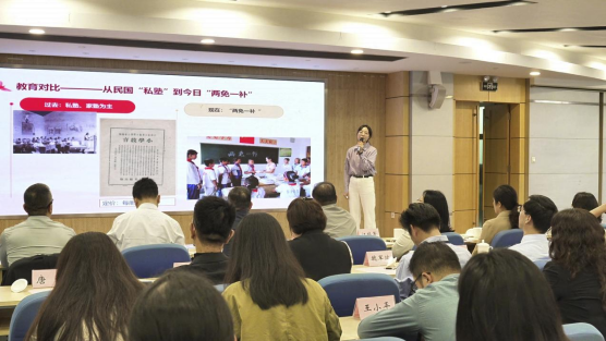 党委书记陈苏介绍道:把博物馆展陈融入到读书分享会的‘沉浸式学习场景’,构建了大学生思政教育从理论认知到价值内化的完整链条。我们校馆合作项目组在策展中将书中一些关键问题与展品、场景对应,通过分享会双师课等形式形成‘阅读—观展—验证’的闭环体验‘以书载道、以文化人’思政实践的一种创新尝试