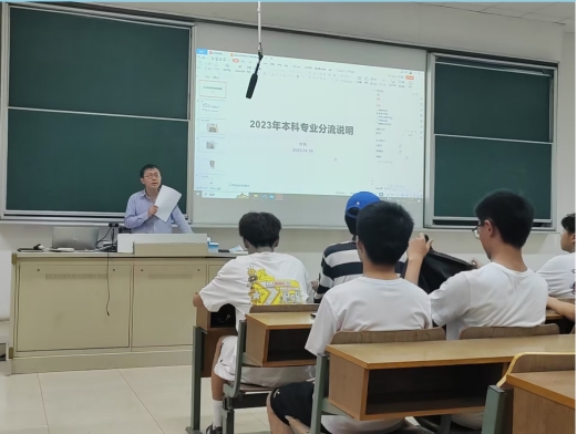 在博观楼301召开大类分流和转专业政策宣讲,讲座由财政系系主任叶兵、税收系系主任刘亮亮主讲,全体2022级学生参加讲座。