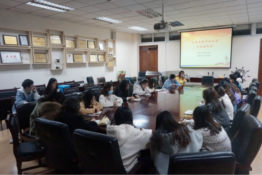 青马班于仙林校区德经楼408会议室召开“大学生眼中的两会”交流座谈会。会议由学院分团委副书记曾丽娟主持,学院青马班、学生会全体成员、入党积极分子及学生党员代表参与此次交流座谈会。