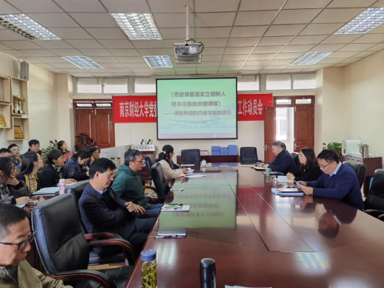 茆素琼副教授带领大家学习了《求是》杂志发表的习近平总书记重要文章《思政课是落实立德树人根本任务的关键课程》,认识了“课程思政”缘起和聚焦深化。茆素琼副教授结合个人学习和学校发展,围绕“立德树人”根本任务,从课程思政的背景、课程思政的内涵、实践”课程思政”的方法与途径、优秀案例分析几个方面对课程思政进行了深度解读。她强调推进“课程思政”建设的关键是教师,教师要不断提高自身的思想水平、业务知识和业务能力。思政课的改革创新,离不开课程思想性、理论性和亲和力、针对性的不断增强。