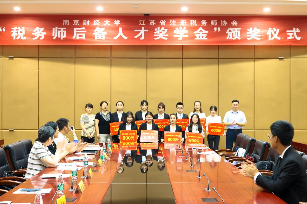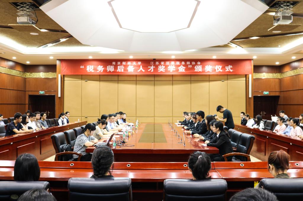 于工科楼会议室举行2019年度“税务师后备人才奖学金”捐赠暨颁奖仪式。江苏省注册税务师协会会长周苏明,副会长于阜宁,办公室副主任徐华敏,我校对外联络处副处长王冲,toptoon