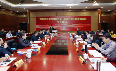 、公共财政研究中心共同主办的“转型背景下的政府职能、财税政策与高质量发展”专题研讨会于我校仙林校区工科楼二楼会议室召开。《中国工业经济》杂志社社长张其仔研究员、南京大学商学院院长沈坤荣教授、上海财经大学公共政策与治理研究院院长胡怡建教授、中国社会科学院财税研究中心主任杨志勇研究员、对外经贸大学财政系主任毛捷教授、南京师范大学商学院副院长白俊红教授等20多所高校、科研院所的80余位专家学者参加了会议。我校党委常委、副校长华仁海教授出席会议开幕式,校期刊编辑部副主任杨青龙副教授参加会议开幕式。