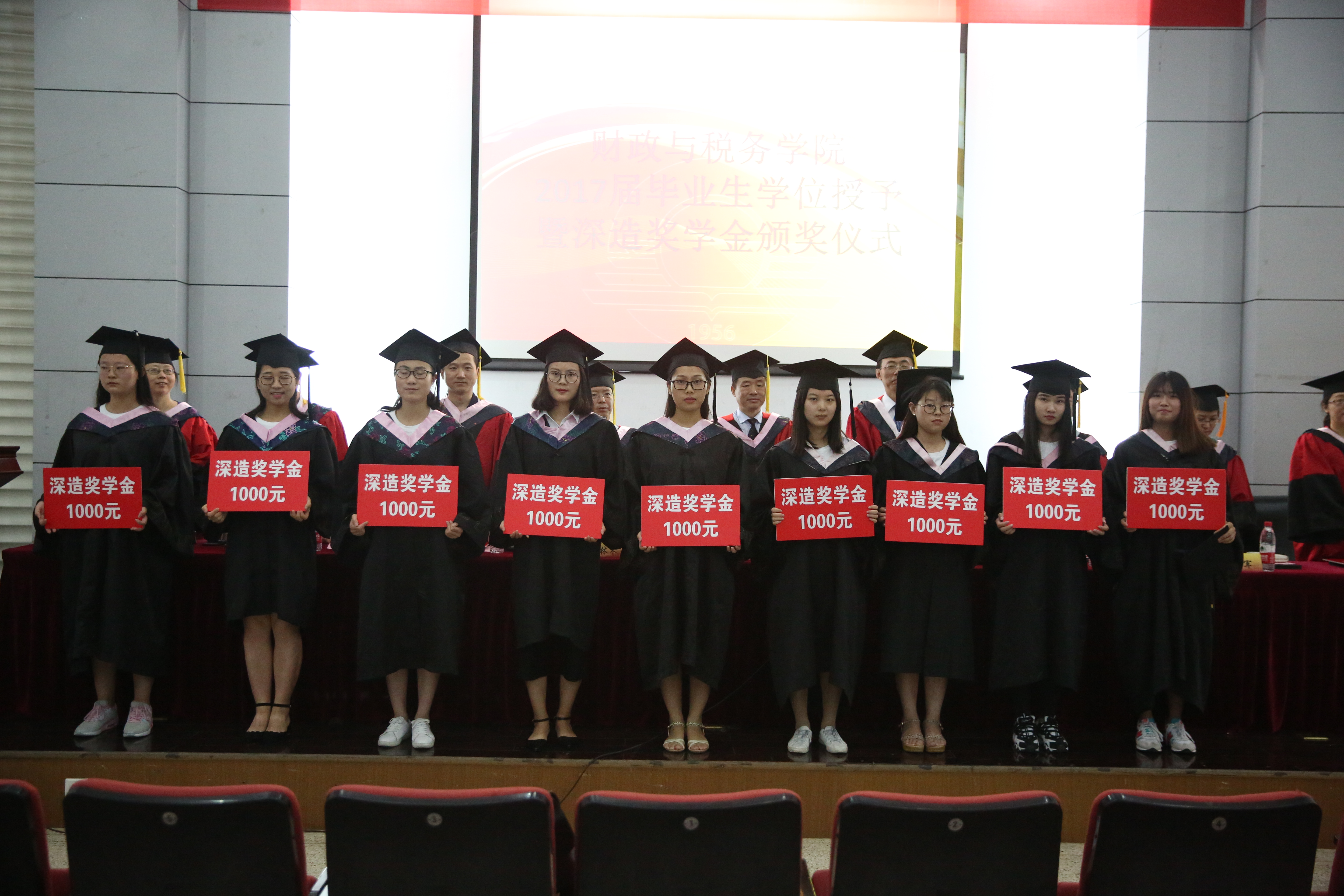 应届毕业生考研再创佳绩,共有41位同学分别被厦门大学、上海财经大学、莫纳什大学、杜伦大学等国内外名校录取为硕士研究生,(截止目前)考研录取率达21.7%(国内考研录取率达19.1%)。6月19日下午,在2017届本科毕业生学位授予仪式上,学院同时举行了2017年“深造奖学金”颁奖仪式,奖励继续深造的优秀学子们每人1000元,期望他们秉承学院“崇尚学术 志存高远”的学风继续前行,激励和号召在校的低年级同学在高等教育普及化形势下应努力提升学历层次。