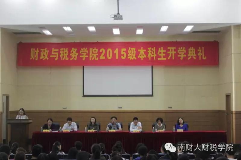 在管理学科楼报告厅举行了2015级本科生开学典礼,学院党委书记张金龙、副院长黄斌、党委副书记陈苏、税务系副主任程瑶、以及财政系教授唐祥来、蔡军、吴美华等出席。开学典礼由党委副书记陈苏主持。
