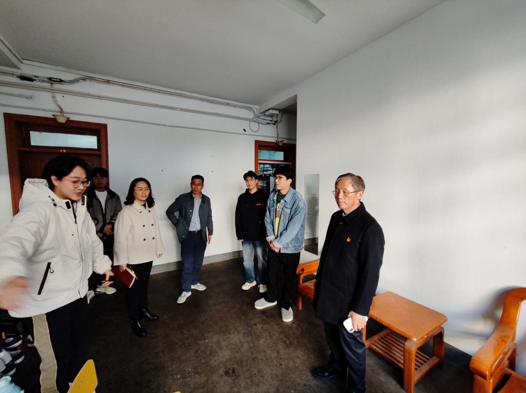 在结对学生宿舍,黄步龙副校长详细询问了同学们的学习和生活情况以及对学校、学院发展的意见和建议,耐心解答同学们提出的各类问题。