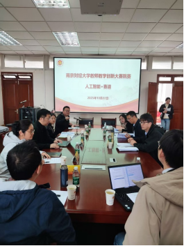 法学院副院长蔡养军。紧接着五位参赛老师依次进行上台汇报教改成果,AI技术赋能课程革新成为核心亮点,专家团队现场点评并提出优化建议。
